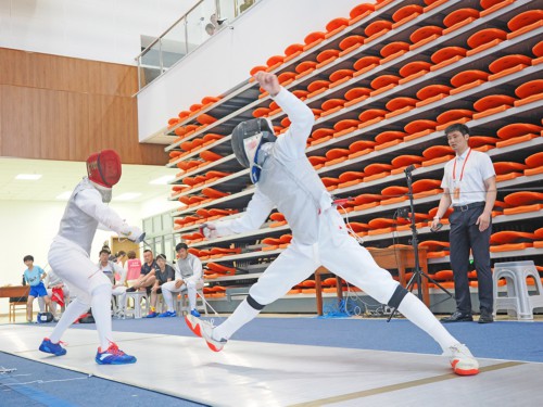 8月10日—13日,2023年江苏省青少年击剑锦标赛,在江苏省青少年训练基地举办。本次比赛共设花、重、佩剑48个项目。在8月12日14-15岁组别比赛中,无锡男子重剑获得了团体冠军,女子重剑获得了团体亚军。(张轶伦 摄)