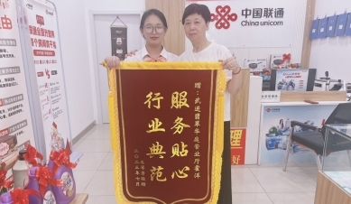 近期,冒着炎热,江苏常州市民朱阿姨,特意来到中国联通常州市武进区翡翠华庭营业厅,将一面写着“服务贴心,行业典范”的锦旗,送给店长霍洋,感谢她一年多以来不厌其烦地帮助自己。