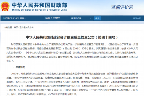 近日,财政部对备案从事证券服务业务的会计师事务所开展监督检查,情况公告指出“检查单位数量为历年之最”“处罚力度为历年之最”。两个“历年之最”颇为抢眼,传递出监管层对会计审计违法行为保持“严监管、零容忍”高压态势的明确信号。