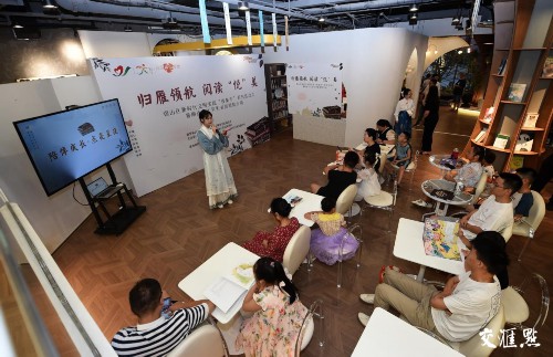 交汇点讯 “我从《安徒生童话》归来,我从《水浒传》归来……”8月13日晚,一场以“归雁领航 阅读‘悦’美”为主题的夜读沙龙在无锡市锡山区映月钟书房举行。4名暑期返乡大学生以诗歌朗诵《一路书香 一生阳光》开场,沉浸式的诵读让在场孩子们感受到了阅读之美。