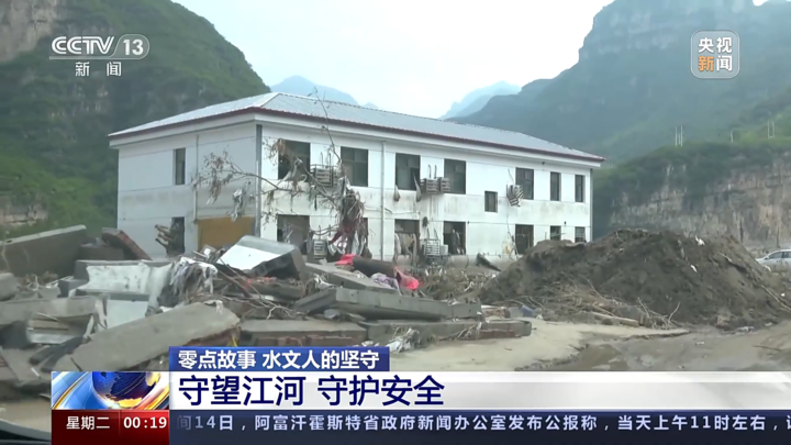 办公室已经被水冲毁,但测量工作不能停。山上积压的水流仍在不断往河里流,为了准确读取实时水位,提前判断涨水信息,现阶段,他们依然要保证一小时一发报,紧盯河道水情变化。