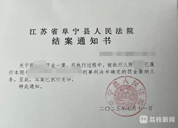 今天(8月16日),记者从盐城阜宁法院获悉,该院执行干警跨省前往福建省执行一起案件,面对14万元的巨额罚金,被执行人早已不知去向。“做人要讲诚信,我儿子的罚金我替他缴纳。”让执行法官感动的是,被执行人九旬的老母亲得知外省法官千里奔波来执行,设法凑齐了罚金并在线上代缴,案件得以顺利执行。