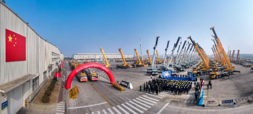 2023年1月6日,徐工起重机海内外“双百台”开门红发车仪式。