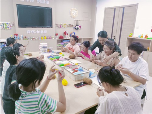 培训采取集中授课与分别指导相结合的方法,手工老师赵静一边向学员们展示钩针编织作品成果,提高学员兴趣,一边从手工编织的方法、技巧及花色搭配等知识,讲授编织制作全过程。学员之间互相学习交流、讨论互动,学习氛围异常浓厚。