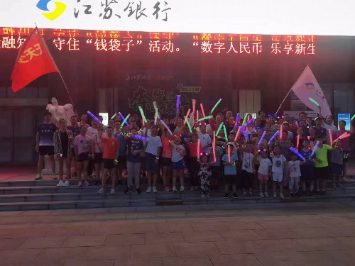中国江苏网8月16日淮安讯 为积极推广数字人民币,响应新时代文明实践“点亮星空”行动部署,江苏银行淮安分行近日举办“数”你最酷主题公益活动,上百名运动爱好者齐聚钵池山公园,共同进行趣味横生的“荧光夜跑”活动,为淮安的夜晚增添了一份别样的色彩。