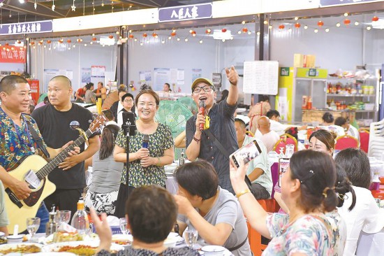 8月12日晚,记者走进盐城滨海夜市大排档,映入眼帘的是闪烁的霓虹和涌动的人流。食客的交谈声、厨房炒菜声、舞台音乐声交织在一起,逐渐升腾的烟火气,演绎着夏夜的精彩,也为消费复苏增添强劲动能。