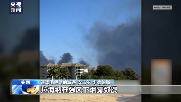 逃离毛伊岛的游客 安吉尔·卡德纳斯:最初我们以为这只是停电,但是看到海滩的另一边,拉海纳在强风下烟雾弥漫,就觉得事情不妙。