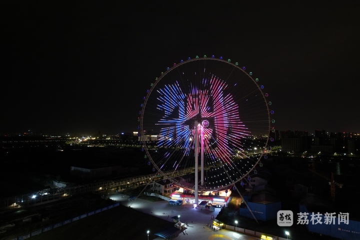 8月18日晚8点,摩天轮灯光点亮。“荔枝新闻”和《非诚勿扰》的巨型logo,从很远的地方就能被看到。而“伴你一起看世界”、“缘来时刻”的字样闪耀时,也点出了这次活动的主题。