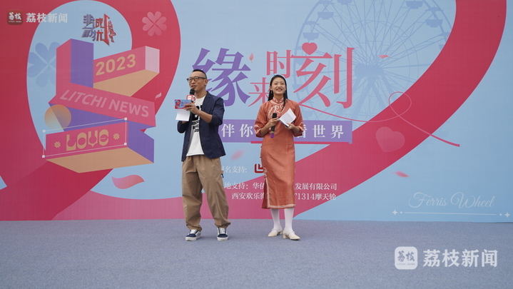 西安市民许先生说,虽然他也曾在这里看过几次主题光影秀,但这一次和1314摩天轮可以说最“搭”了。《非诚勿扰》作为国内知名的生活服务类节目,主打的就是缘分和爱情。而荔枝新闻“伴你一起看世界”的slogan,更是让爱情的主题得到升华。