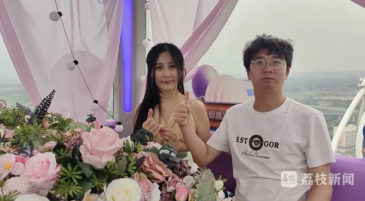 这个游戏十分受欢迎,进行了多轮,最终选出表现最优秀的5对,送出“天空约会”的入场券,免费乘坐1314摩天轮,还能获得荔枝新闻和《非诚勿扰》送出的专属订制奖品——主持人孟非的签名照,以及荔枝新闻的文创礼包。