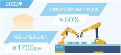 记者日前从2023世界机器人大会上获悉:2022年我国工业机器人装机量占全球比重超50%,稳居全球第一大工业机器人市场,制造业机器人密度达到每万名工人392台。