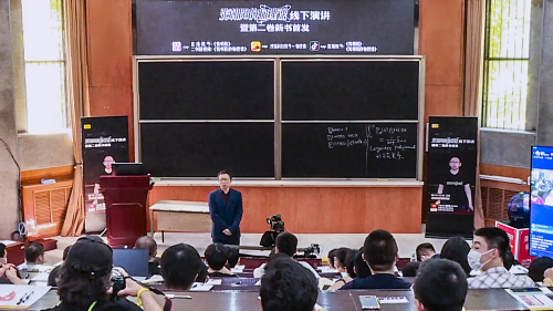 线下演讲持续近2个小时,黑板写满了推导公式。楼宇庆点评道,虽然满屏公式看着有点眼花缭乱,但是可以让大家了解从事天体物理研究的人在做的事情。随后,楼宇庆与张朝阳关于探讨“如何观察月球在远离地球”开展快问快答,让现场气氛达到高潮。