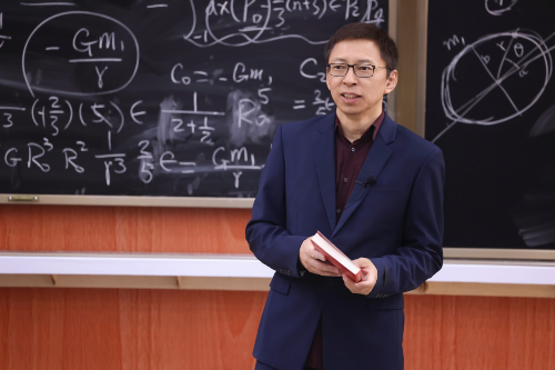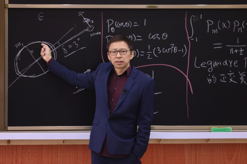 演讲开始,张朝阳从新书中的特色章节出发,围绕“非球形天体的引力势”,借助勒让德函数展开求出了旋转对称椭球体的外部引力势,并由此求出来地球的潮汐形变以及地球对月球的力矩。相比于海水的潮汐计算,这次计算考虑了地球潮汐形变所导致的引力势修正,这一修正的量级是很大的,因此结果更加精确。