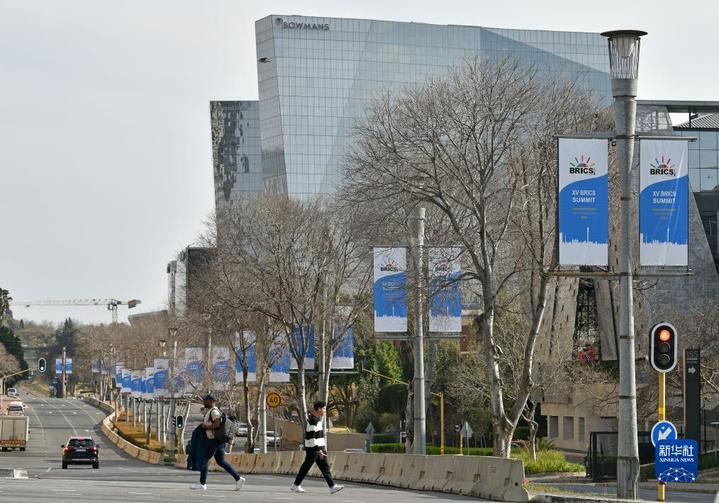 这是8月17日在南非约翰内斯堡拍摄的金砖峰会条幅。新华社记者 陈诚 摄