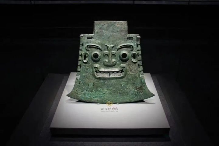 用现藏于山东省博物馆的青铜器瑰宝商代青铜器亚醜钺,露出“尴尬而不失礼貌的微笑”;