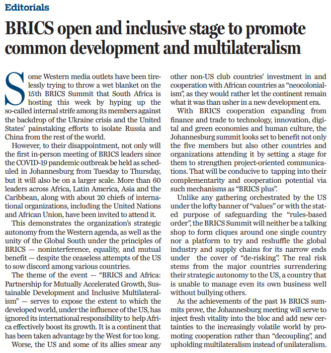 原文标题:BRICS open and inclusive stage to promote common development and multilateralism
