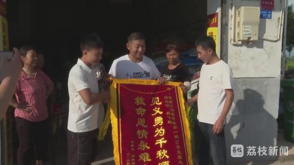 昨天(20号)下午,来自山东菏泽的牟尊义和家人将写有“见义勇为千秋颂 救命恩情永难忘”字样的锦旗送到灌南县汤沟镇葛集村数名村民家中,感谢他们在危急时刻救了他儿子的命。究竟当时发生了什么事,了解一下。