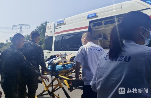 8月21日上午9时许,在江苏省宜兴市宜金公路与塍南大道交汇处,武警第二机动总队某大队3名官兵执行运送物资任务途中,一辆黑色小轿车在十字路口右转时与一辆电动车相撞,驾驶电动车的地方女青年倒在道路中央,额头、下颚和双膝受伤,无法行动,情况十分危急。