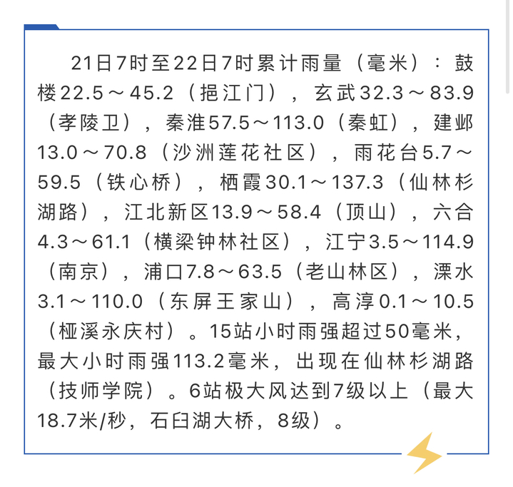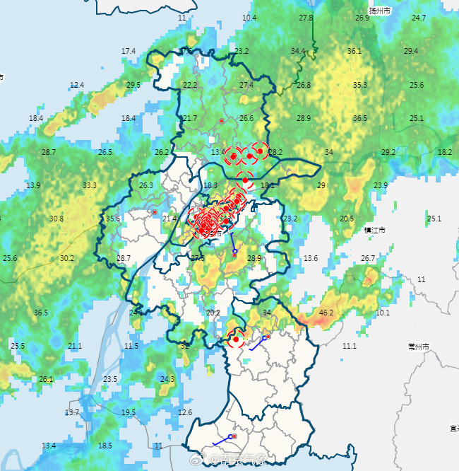 但是这场雨来势汹汹,南京主城、浦口、江宁等地累计雨量已经远远超过了50毫米的暴雨标准,局部地区甚至超过了100毫米,达到了大暴雨级别。