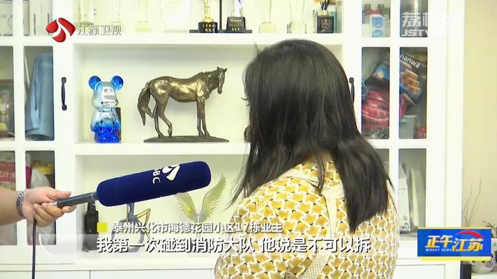 泰州兴化市海德花园小区17栋业主:“我第一次碰到消防大队,他说不可以拆,后面他又说可以拆。”