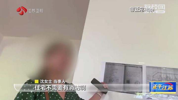 当事人沈女士说:“住宅不需要有消防,而且这个消防设施没有一点水,根本就没有用,最主要的是喷淋不通任何一户人家,我做住宅,住宅的话影响层高。”