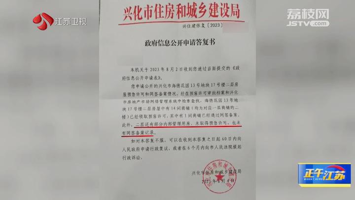 兴化市住建局信访办负责人:“没有办手续、备案、销售许可。说过了,都没有手续是管理用房。”