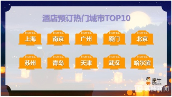 一场浪漫的七夕之旅,高品质的温馨酒店是不可或缺的重要环节。途牛预订数据显示,上海、南京、广州、厦门、北京、苏州、青岛、天津、武汉、哈尔滨等地的酒店预订热度排名靠前。