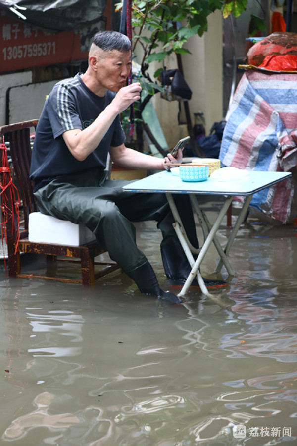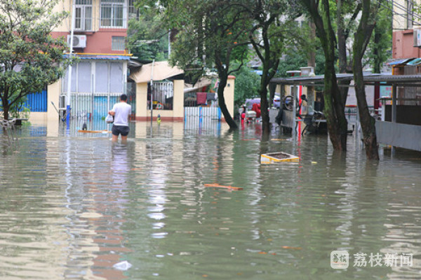 由于玄武区北安门街积水太深,富贵山小区一片汪洋,雨水一时难以流掉,整个区域积水十分严重,给居民生活都带来了影响。