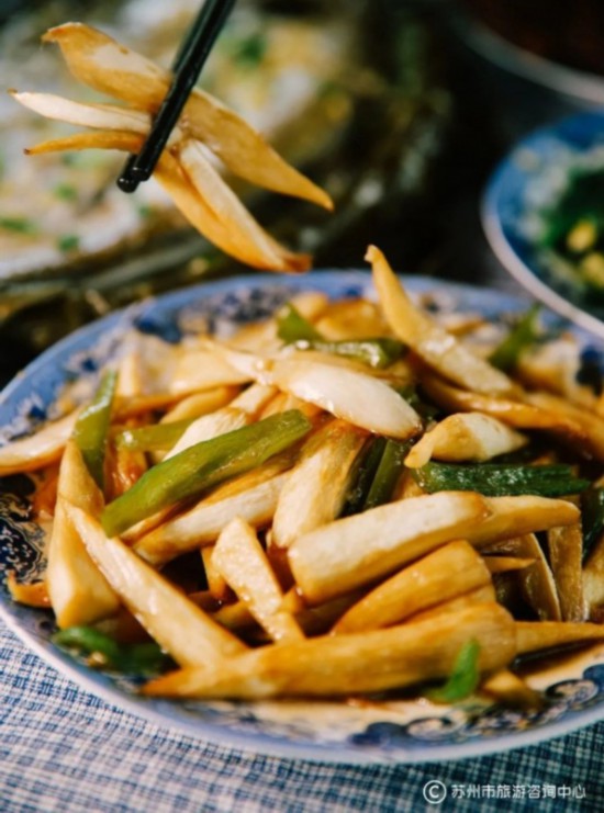 还有一道油焖茭白,也是“老苏州”的最爱,汁水充足,滑嫩爽口,极其下饭。