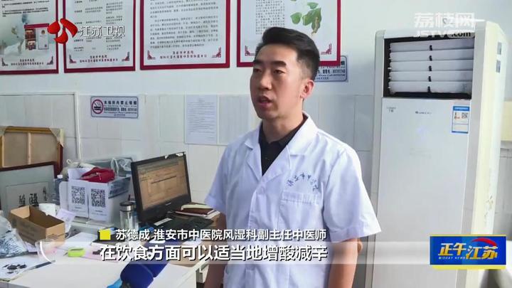 淮安市中医院风湿科副主任中医师苏德成说:“在饮食方面可以适当地增酸减辛,像苹果、葡萄这类的一些,还有山楂等等,燥气容易导致我们口干、眼干或者大便不好的情况,所以我们适当增加一些像百合、荸荠、玉竹、银耳等等养阴润燥生津的一些食品。”