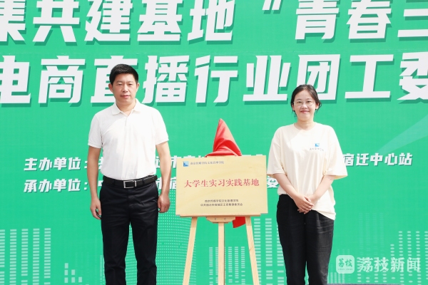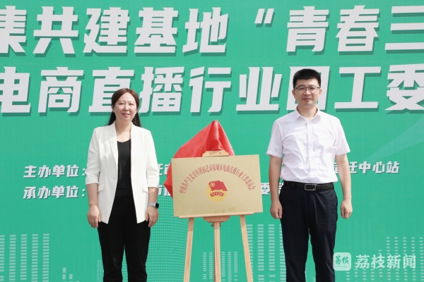 宿迁团市委书记何川、宿城区委副书记史巧红共同为宿城区电商直播行业团工委揭牌