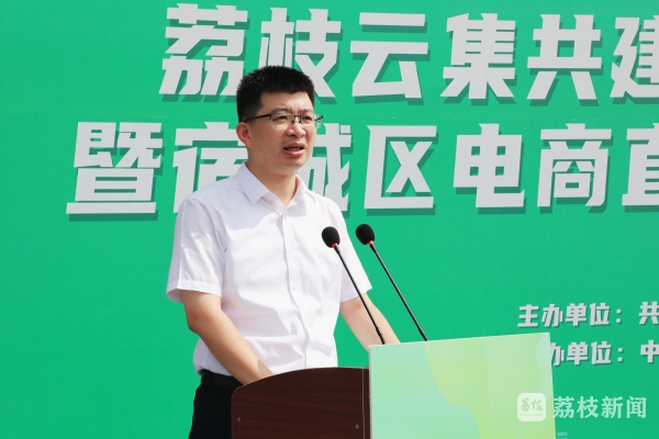 宿城区委副书记史巧红代表宿城区委、区政府致辞,并在致辞中提出三点希望:一是希望省广电总台、南京传媒学院发挥行业优势、技术优势、人才优势,在项目上给予更多支持,在业务上给予更多指导,为宿城高水平建设农业强区、全面助推乡村振兴“传经送宝”;二是希望电商直播行业团工委和区、镇两级团组织以此次活动为契机,以实践基地和直播基地为载体,聚焦农文旅产品与电商直播融合发展,推进助农电商人才孵化,探索形成农产品从生产源头到终端销售互联互促的全产业链格局,切实通过“团建链”串起“人才链”“资源链”“产业链”;三是希望广大青年朋友砥砺奋进、主动作为,走进农村、发展农业、服务农民,深入挖掘本土资源和特色产品,充分发挥自身在新媒体赋能乡村振兴中的重要作用和显著优势,在宿城电商产业高质量发展新征程中书写青春答卷,展现青春担当。