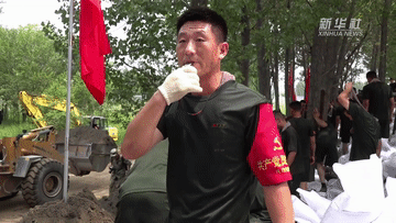 武警天津总队某支队中队长张龙飞,中共党员,在接到上级抗洪救灾命令后,张龙飞带领中队指战员接续奋战7昼夜,从大清河转战子牙河,总计在大堤上作业132小时,扛运沙袋8万多个,战士们在张龙飞的带领下士气高昂,始终冲锋在最前沿。张龙飞说,当人民需要的时候,我们必须上。