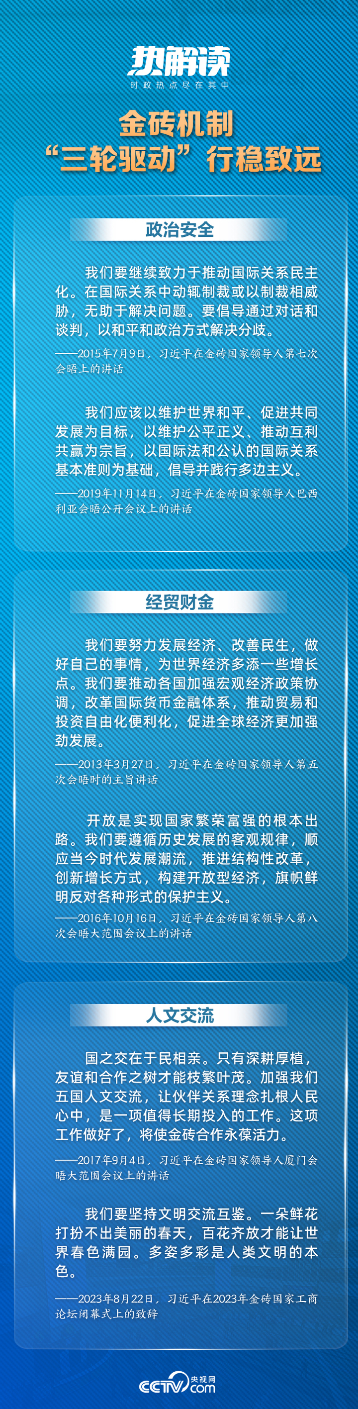 从字母组合的符号象征到一块实打实的“金砖”,回顾金砖合作机制走过的历程,习近平主席倡导的“三轮驱动”合作架构为金砖国家合作发展提供了可行有效的抓手。