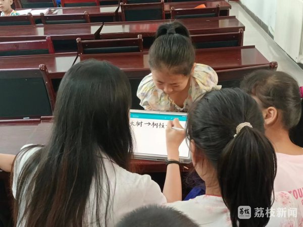 “这个字就是谢……”用笔在白纸上写写画画,柏玉婷将汉字和少数民族的文字一一对照,耐心地教导这些少数民族的孩子。在为期一个月的支教中,柏玉婷主要负责开设汉语课堂,利用生动有趣的方式教授孩子们简单的汉字和日常用语。“看着他们闪着光的眼睛,我想告诉他们外界的故事,希望给他们带来一片崭新的天地。”因此,闲暇时间,柏玉婷与他们一起玩耍、聊天,用自己新奇的故事和温暖的个性,给孩子们带来无限的乐趣,给孩子们编织出美丽的梦。