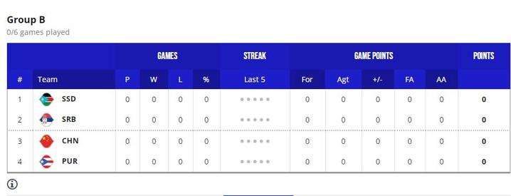 本次世界杯,中国队与塞尔维亚、南苏丹、波多黎各同分在B组。