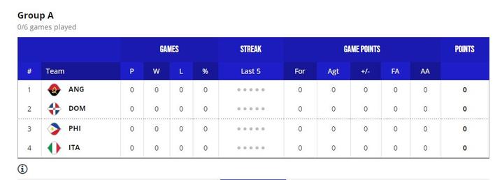 菲律宾队与意大利、多米尼加、安哥拉同在A组。其中,安哥拉队世界排名第41,在世界杯前的热身赛中,在与约旦和日本两支亚洲球队交手中均败下阵来。而有着NBA级别得分手克拉克森坐镇,菲律宾队有很大机会击败对手,锁定一场小组赛胜利。此外,坐拥主场之利的他们,面对多米尼加也并非全无胜算。