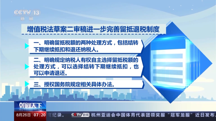 杨合庆表示,增值税法草案吸收近年来留抵退税改革成果,在增值税暂行条例相关规定的基础上,进一步完善了留抵退税制度。