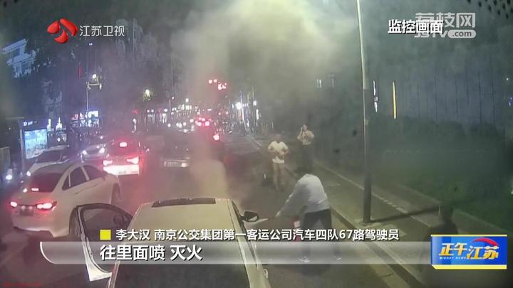 【南京:私家车突发自燃 公交驾驶员及时灭火】