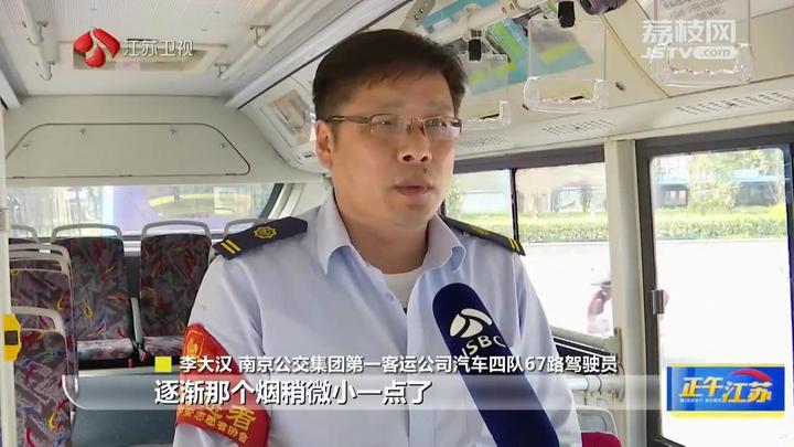 8月20日,南京67路公交车驾驶员李大汉在行车途中突然发现前面的一辆私家车在冒烟,他立刻冲下了车。