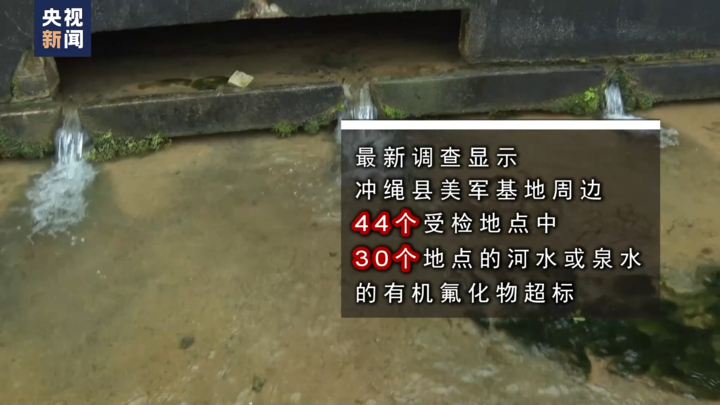 冲绳县每年对美军基地周边地区的水体开展两次调查。最新调查显示,美军基地周边44个受检地点中,30个地点的河水或泉水的有机氟化物超标。其中,嘉手纳基地附近一处泉水中有机氟化物含量是日本国家标准的36倍。