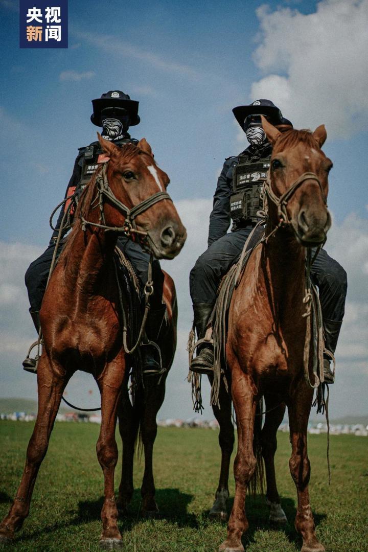 目前,海东青骑警队共有10名队员,平均年龄30岁。他们的防晒面罩、袖章、胸前都有象征海东青骑警队的“苍鹰”标识,成为草原上一道亮丽的“警”色。