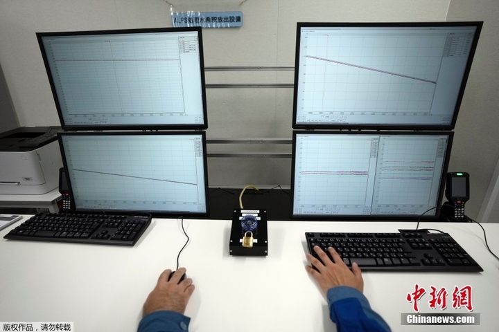 图为工作人员正在福岛第一核电站的远程监控室工作。