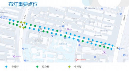改造完成后,整个路段的路灯将实现“多合一”,总杆数从90杆减少至77杆。