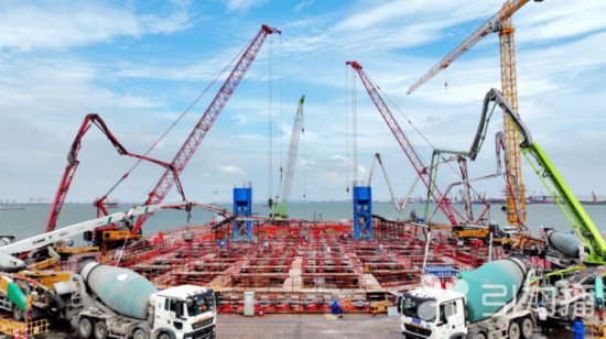 此次张靖皋长江大桥南航道桥南主塔承台封底混凝土浇筑完成,意味着张靖皋长江大桥主体工程施工进入“快车道”,主塔承台施工进入“大兵团作战”阶段。接下来,项目建设团队将继续紧抓施工“黄金期”,充分调动各方工作积极性,加快推进项目施工进度,高质量筑牢大桥基础。