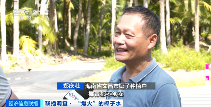 海南省文昌市椰子种植户 郑庆壮:椰青都不够卖,椰青的椰汁水是很贵的。