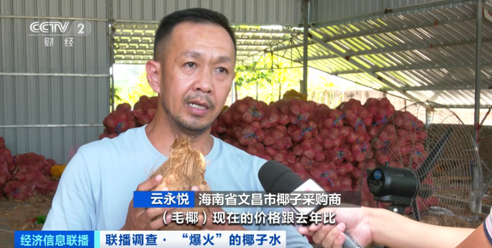海南省文昌市椰子采购商 云永悦:毛椰现在的价格跟去年比,涨幅在20%左右。用水的人比用肉的多。需求大于供给,所以就开始出现紧张。
