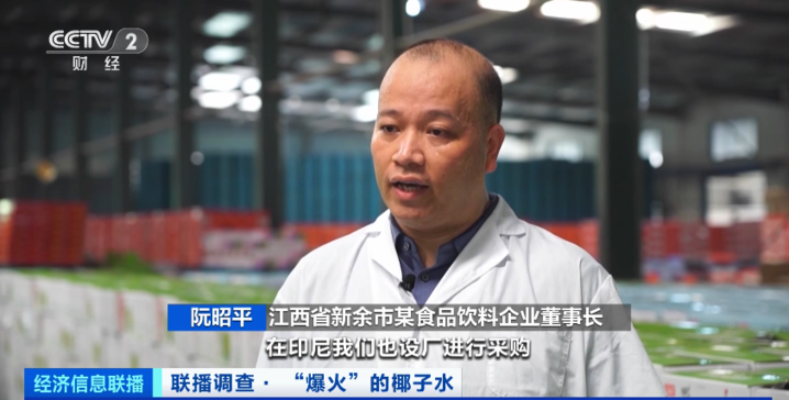 江西省新余市某食品饮料企业董事长 阮昭平:今年和去年的数据对比,产量已经增长了600%。现在我们一天生产100多吨椰子水,基本上产品出来后,三天之内就销售一空。
