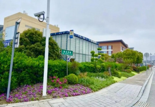 徐元河路,改造中市政部门进行适宜的微地形处理,清除场地内飞线,在靠内侧较高处种植法国冬青作为生态绿篱,遮挡沿街建筑及停车场,并通过不同色彩的植物营造出层次丰盈的自然空间,充分展现植物的群落美和自然美。