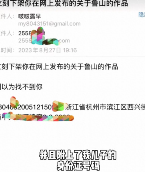 8月27日,诸鸣称,评价鲁山事件后收到了威胁邮件,对方在邮件中要求立即删除相关视频,并且附上了他孩子的身份证号和家庭住址,还留下一句:“不要以为找不到你”。